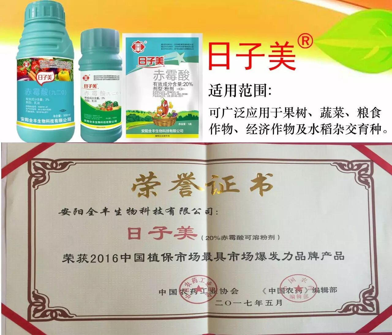 同時,全豐牌10%萘乙酸泡騰片劑榮獲2016年中國植保市場植物生長調(diào)節(jié)劑暢銷品牌產(chǎn)品。日子美(20%赤霉酸可溶粉劑)榮獲2016年中國植保市場最具市場爆發(fā)力品牌產(chǎn)品。
